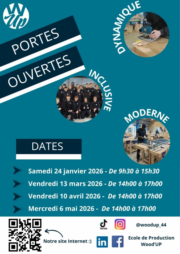 Venez découvrir l’école Wood’Up lors de nos portes ouvertes. Nous vous présenterons les formations de CAP menuisier fabricant et Bac Pro Technicien Constructeur Bois.